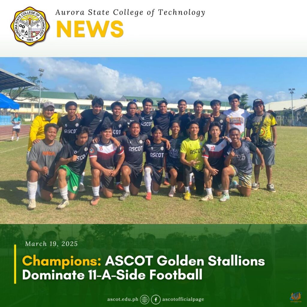 March 19, 2025 – The Aurora State College of Technology (ASCOT) Golden Stallions have once again asserted their dominance, clinching the championship title in the 1st Gov. Reynante Tolentino Football Tournament while competing under the name ISKWA-A.