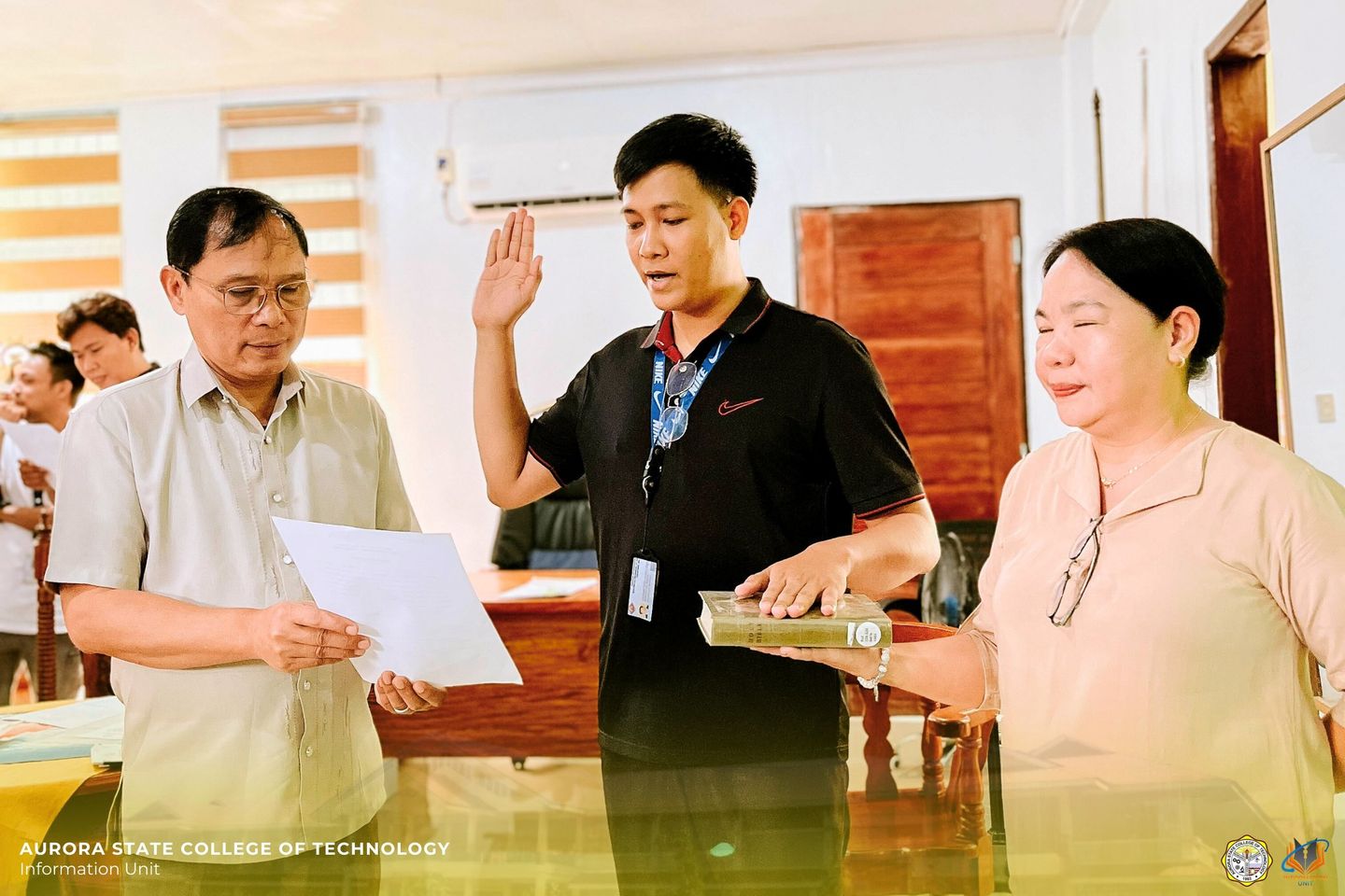 November 6, 2024, Baler, Aurora – Newly hired faculty and staff at the Aurora State College of Technology (ASCOT) took their official oath of office in a ceremony led by ASCOT President Dr. Renato G. Reyes. Civil Service Commission (CSC)-Aurora Director II, Ms. Seymour R. Pajares, also attended to witness the occasion and emphasized the continue reading : ASCOT New Appointees Take Oath Before College President Reyes
