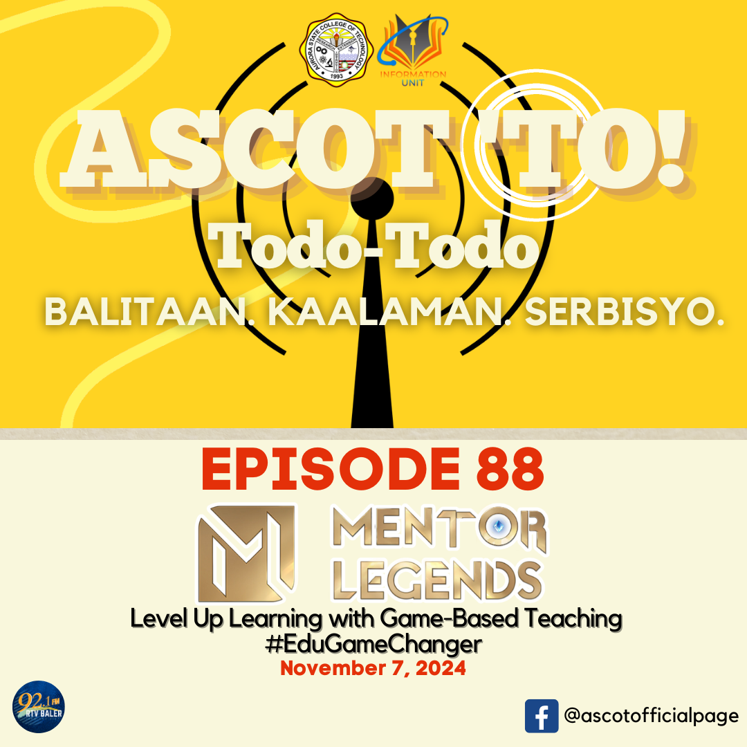 In an exciting latest episode of ASCOT ‘To! Todo-Todo, titled “Mentor Legend: Level Up Learning with Game-Based Teaching,” Ms. Rovelyn L. Lejano, an Instructor 1 from the School of Education, took the stage to unlock the power of game-based learning. With the energy of a game master, she shared how incorporating game elements into the continue reading : ASCOT ‘To Feature : Level Up Learning with Game-Based Teaching