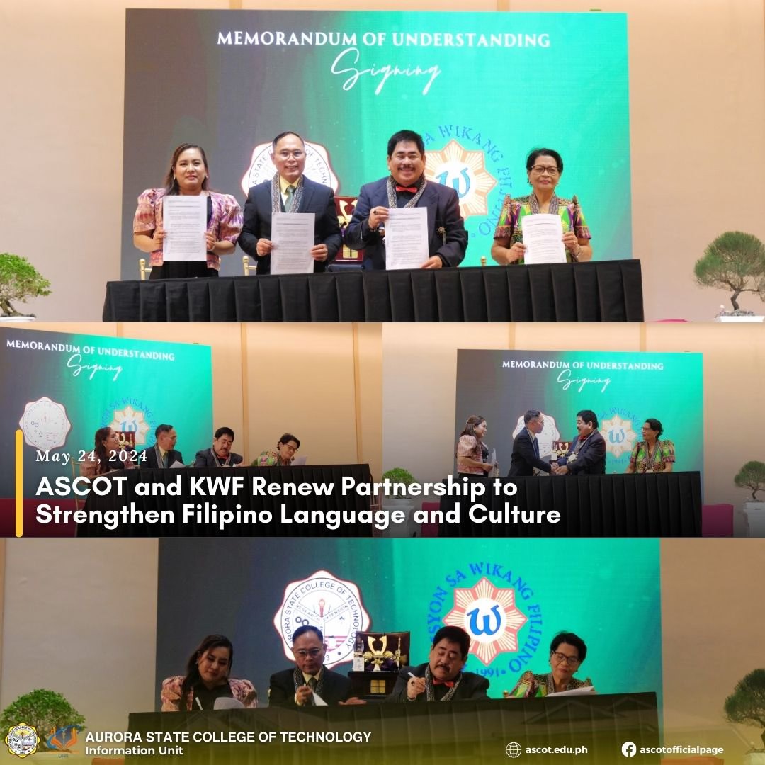 May 24, 2024, Baler Convention Hall- Amidst the ambiance of camaraderie at the ASCOT Meet and Greet Gala’s Partnership for Progress event, another milestone was achieved as the Tagapangulo ng Komisyon sa Wikang Filipino (KWF), Dr. Arthur P. Casanova, and ASCOT President Renato G. Reyes signed a Memorandum of Agreement (MOA). Central to this MOA continue reading : ASCOT and KWF Renew Partnership Strengthen Filipino Language and Culture