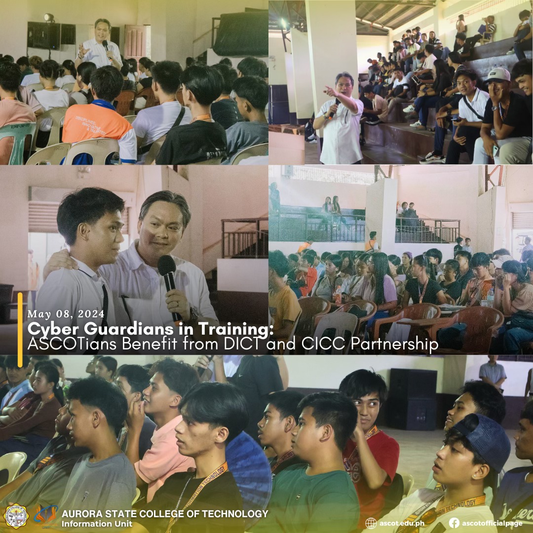 May 7, 2024 – In a concerted effort to bolster defenses against digital threats, Aurora State College of Technology (ASCOT) played host to Project ACUITY (Anti-Cybercrime Upskilling Initiative for Community), a collaborative endeavor between the Department of Information and Communication Technology (DICT) and the Cybercrime Investigation Coordinating Center (CICC). ASCOT Information Technology Officer I, Mr. continue reading : Cyber Guardians in Training: ASCOTians Benefit from DICT and CICC Partnership