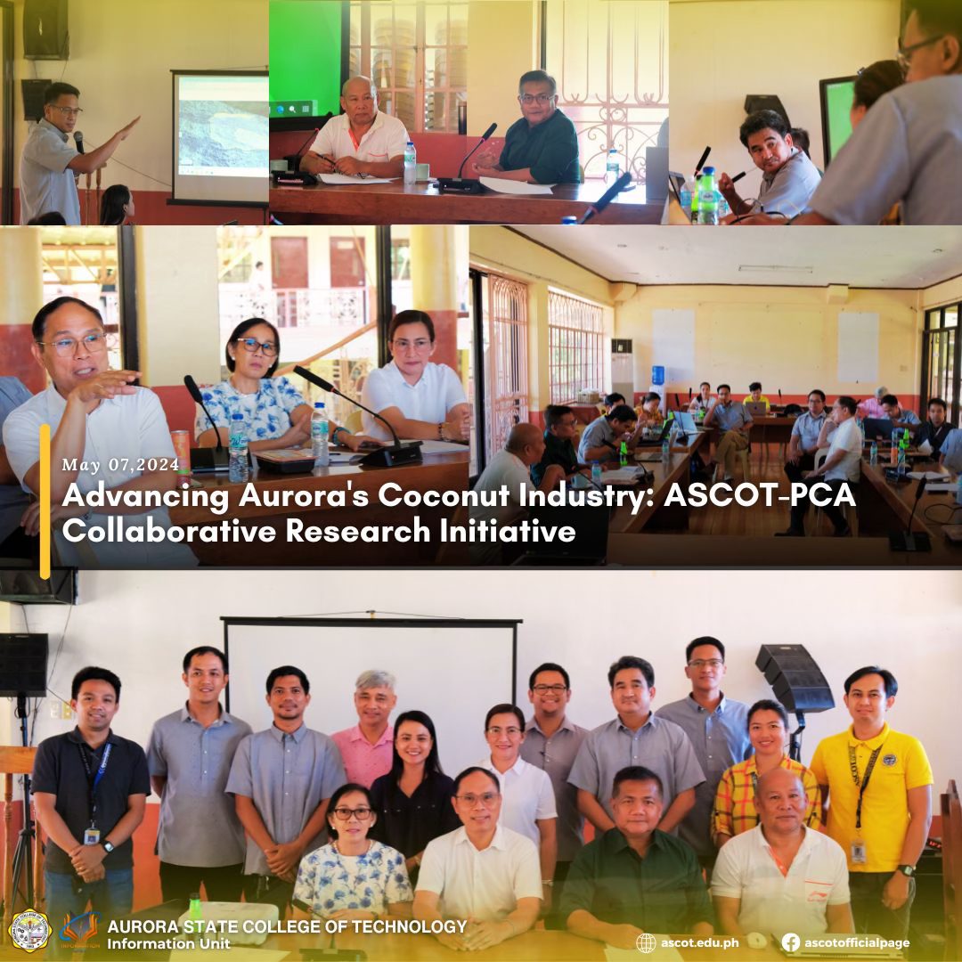 May 7, 2024, ASCOT Zabali Campus- Aurora State College of Technology (ASCOT) and the Philippine Coconut Authority (PCA) have joined forces in a bold undertaking to modernize the coconut industry in Aurora Province. Under the initiative titled “Modernization of Coconut Industry in Aurora Province: A Research for Development Program,”ASCOT presented the project’s objectives to Mr. continue reading : Advancing Aurora’s Coconut Industry: ASCOT PCA Collaborative Research Initiative