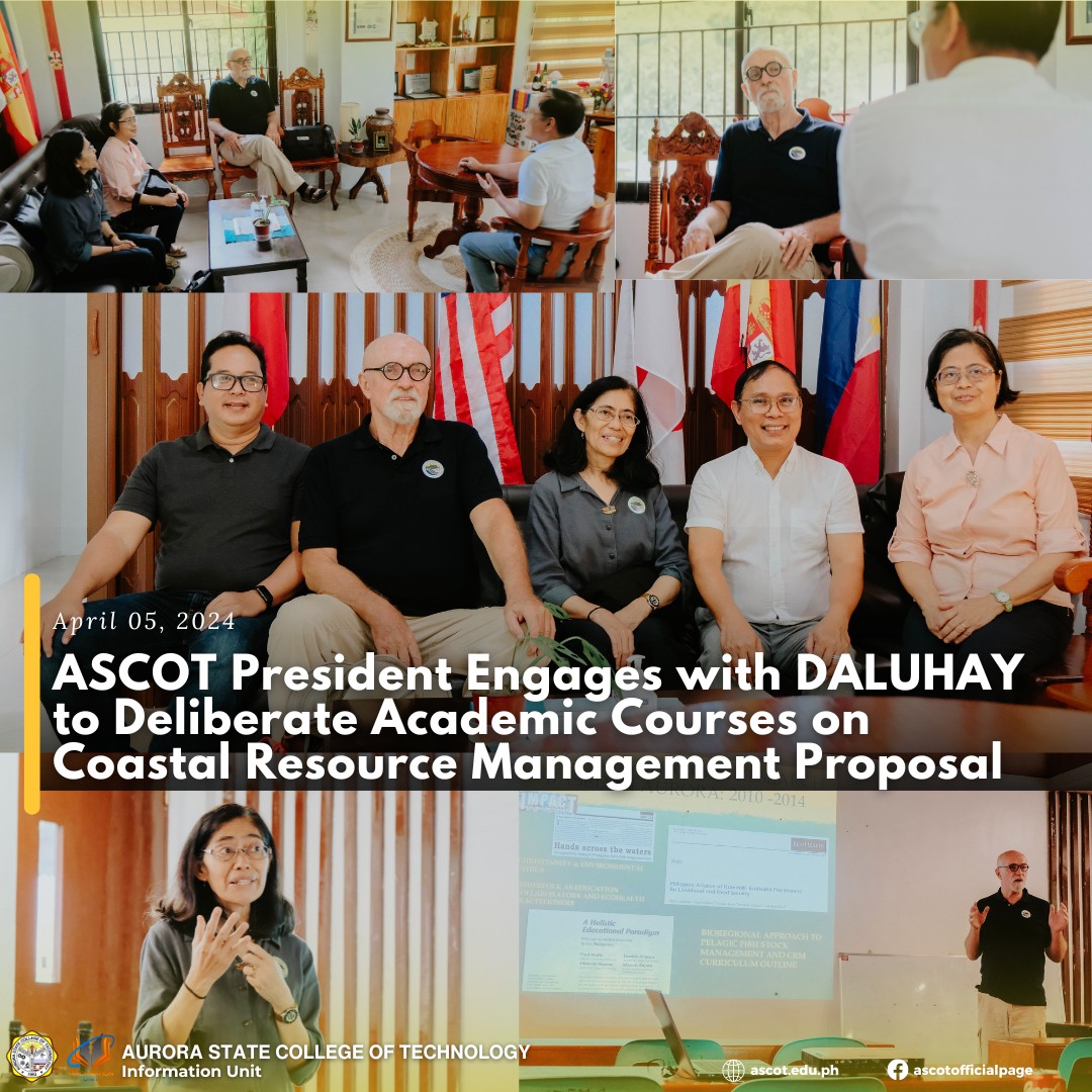In a proactive move towards enhancing education on coastal resource management, the President of Aurora State College of Technology (ASCOT) recently met with DALUHAY (Daloy ng Buhay), a distinguished Non-Governmental Organization known for its collaborative efforts with various stakeholders, including Indigenous peoples, farmers, fisherfolks, and women’s groups, in conserving and protecting natural resources from Ridge continue reading : A Shore Thing: ASCOT President Engages with DALUHAY to Deliberate Academic Courses on Coastal Resource Management Proposal