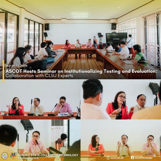 March 25, 2024 – The Aurora State College of Technology (ASCOT) partnered with the Central Luzon State University (CLSU) Testing and Evaluation Center to organize a seminar focused on institutionalizing testing and evaluation practices. Led by ASCOT President Renato G. Reyes, the event brought together ASCOT faculty and staff to learn from Dr. Elmer Dela continue reading : ASCOT Hosts Seminar on Institutionalizing Testing and Evaluation: Collaboration with CLSU Experts