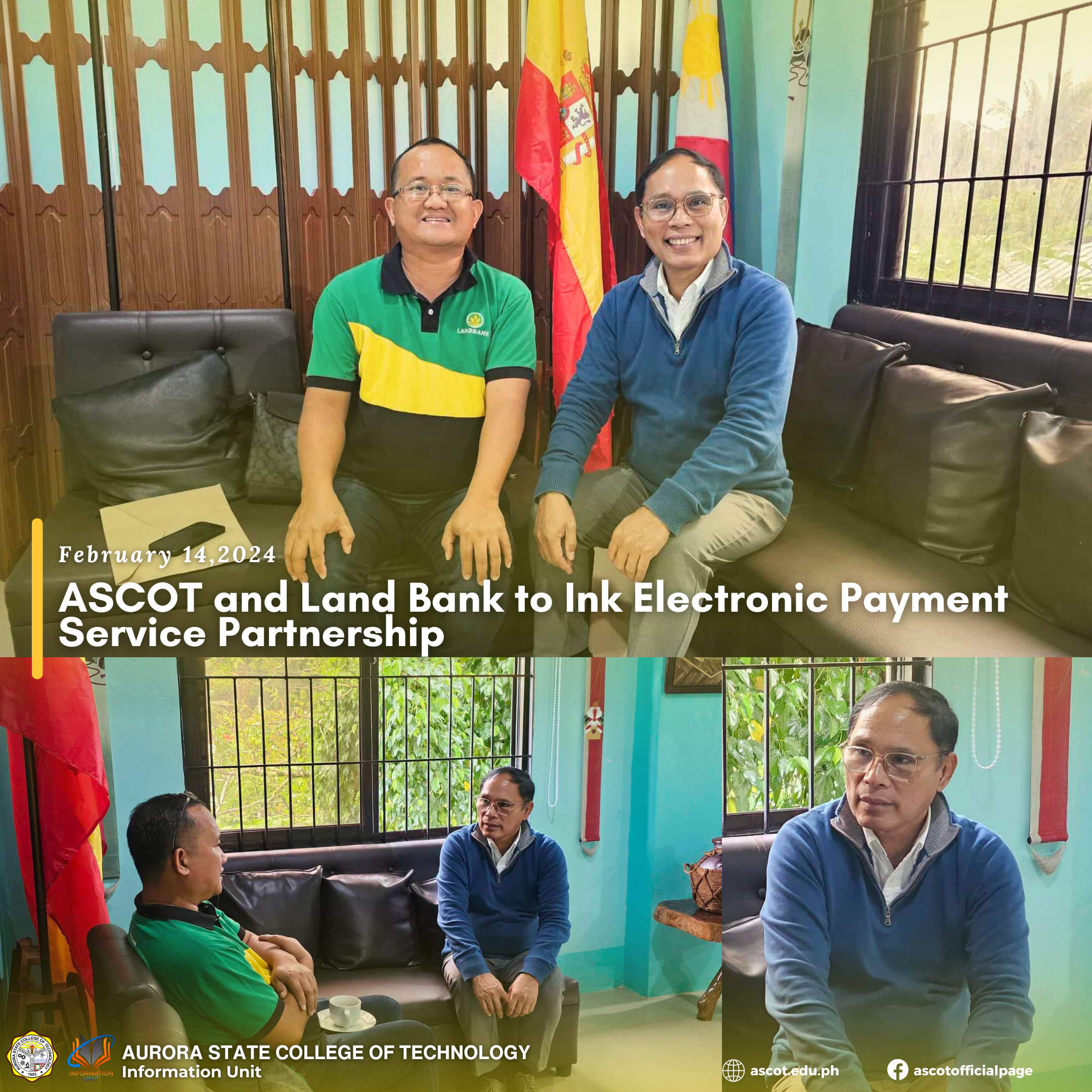 ASCOT President Renato G. Reyes and Land Bank of the Philippines (LBP) Baler Branch Manager Ernesto V. Jimenez are in talks to finalize a Memorandum of Agreement (MOA) for an Electronic Payment Service Link. This collaboration aims to streamline payments for enhanced convenience for graduate students, faculty, and the community.