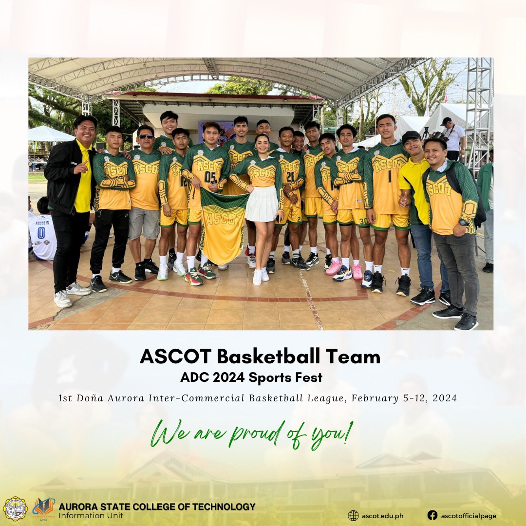 Huge shout out to Wendelle Ora, Janjan Corong, Chriztian Carbon, Ryan Lucerna, Ivan Zuñiga, Denver Alonzo, Rvjay Ortiz, PJ Malijana, Wilson Habala, Jherone Ebenga, Mark Jearon Capillan, Lennon Laddaran, and James Bryan Dino Rivares for representing our college with such pride at the 1st Dona Aurora Inter-Commercial Basketball League at Baler Sports Complex, Feb 5-12, continue reading : Congratulations ASCOT Basketball Team!