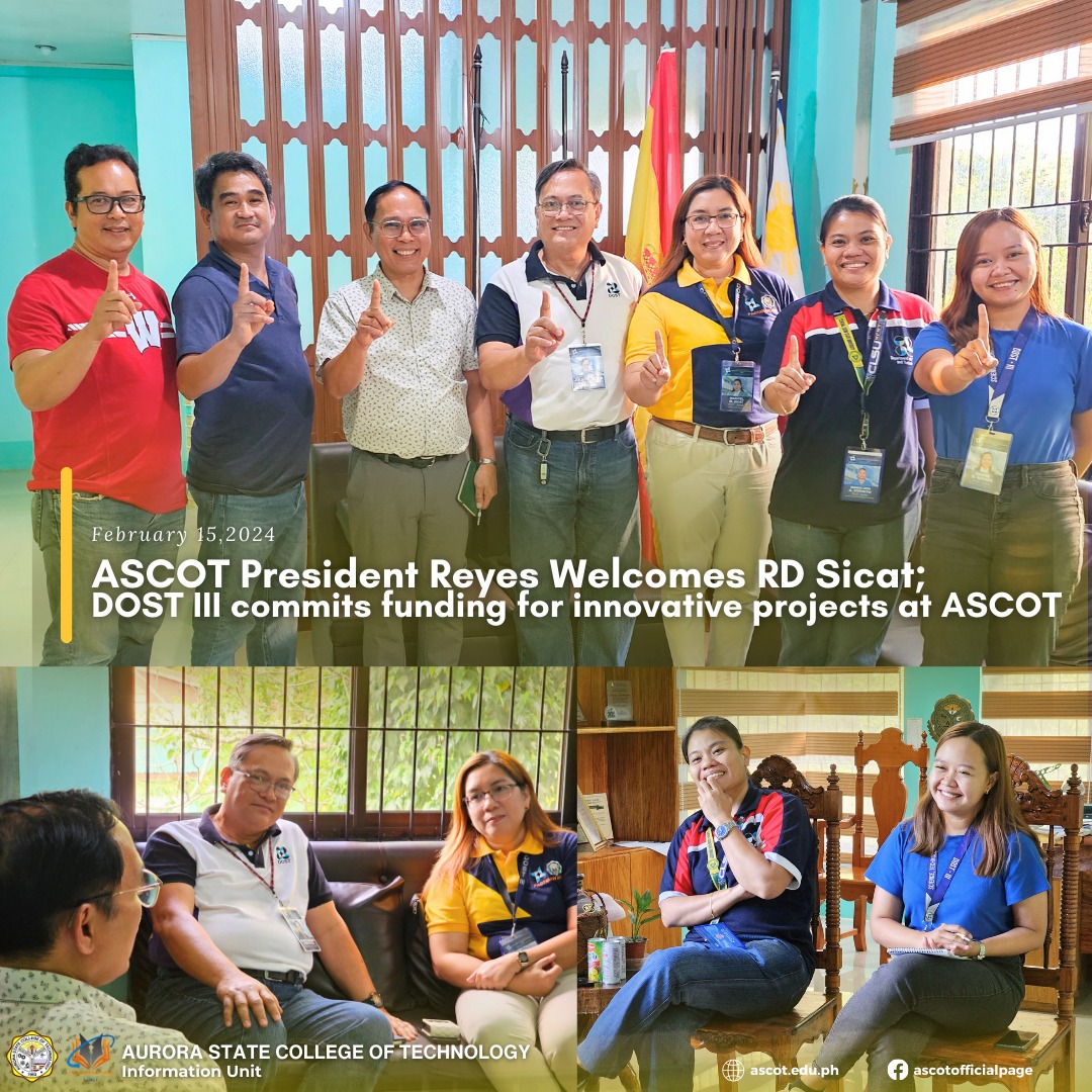 In a forward-looking discussion centered on future inventions and sustainable solutions, ASCOT President Reyes extended a warm welcome to DOST -III Regional Director Julius Ceasar V. Sicat , February 15, 2024. RD Sicat pledged financial support for pioneering projects aimed at harnessing Aurora’s potential. The commitment encompasses funding for initiatives spanning solar stills, salt, air, continue reading : ASCOT President Reyes Welcomes RD Sicat; DOST III commits funding for innovative projects at ASCOT