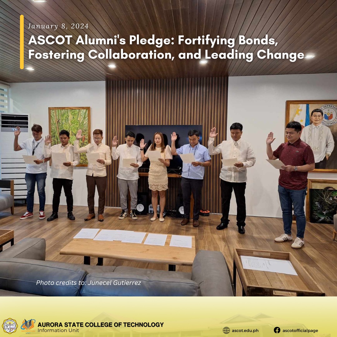 ASCOT alumni officers, led by President Casper Jay Ortiz, took their oath before Congressman Rommel Rico T. Angara on January 8, 2024. This event highlights their commitment to enhancing collaboration with government officials for the betterment of ASCOT and its stakeholders.