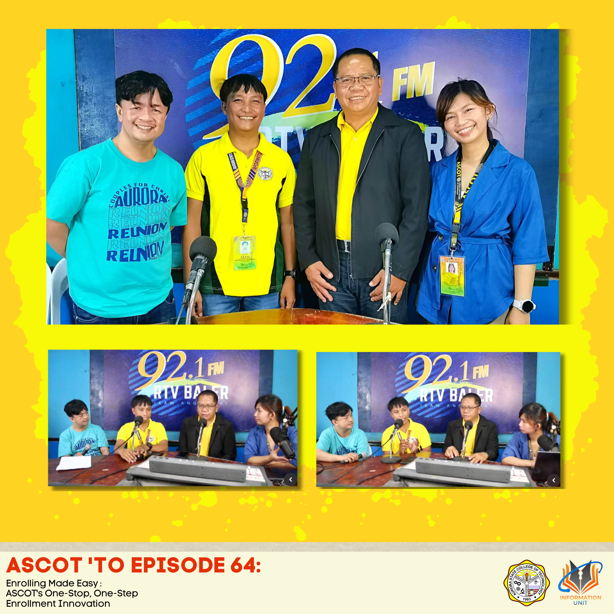 ASCOT ‘To! featured an exciting episode, “Enrolling Made Easy: ASCOT’s One-Stop, One-Step Enrollment Innovation.” VPAA RB J. Gallego, PhD., and Don Sean Arvie V. Buencamino served as guests and introduced the 1S1S system. This initiative simplifies class registration, reduces costs, and enhances safety by going paperless and eliminating long queues. Mr. Buencamino explained the user-friendly continue reading : ASCOT Feature l The ASCOT Enrollment Revolution: Register with Ease!