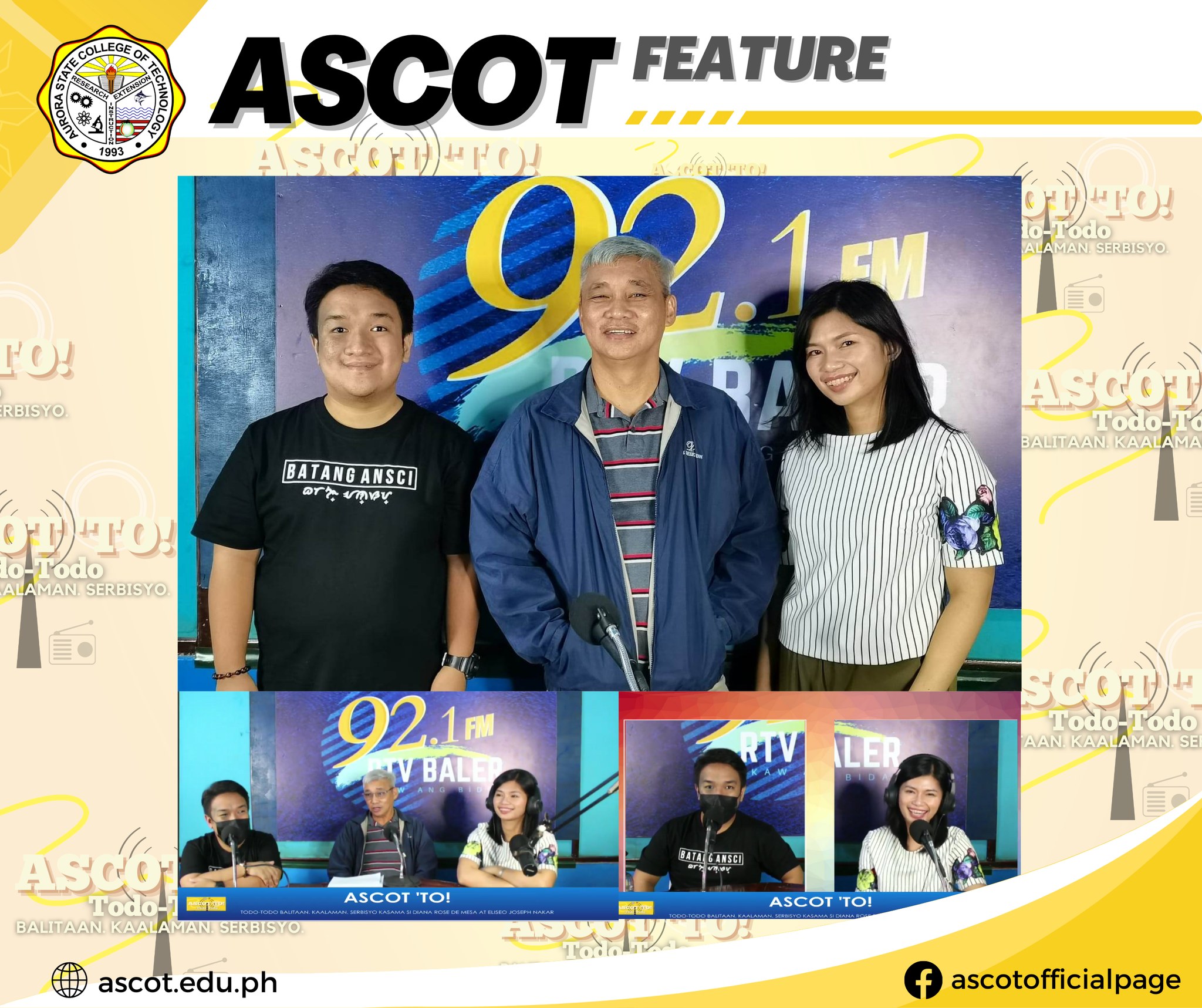 The Director of the ASCOT Extension and Rural Development Office, Dr. Ricardo G. Gonzales, Jr., served as our guest for today’s episode of ASCOT ‘TO (Todo-Todo) at 92.1 FM RTV Baler! In our program’s Episode 49 (ASCOT AKAP-Komunidad!), Sir Rick shared with our listeners the different banner extension programs of ASCOT’s academic departments that are continue reading : ASCOT | Feature: ASCOT ‘TO Episode 49: ASCOT Akap-Komunidad!