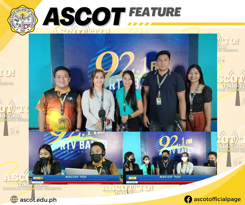 ASCOT | Feature Three of our College’s faculty members handling General Education subjects, Physical Education (PE), and major subjects from the Department of Arts and Sciences and Education Department served as our guests for today’s episode of ASCOT ‘TO (Todo-Todo) at 92.1 FM RTV Baler! In our program’s Episode 42, entitled “Kaalama’y Todo Pa ring continue reading : ASCOT | Feature: ASCOT ‘TO Episode 42: Kaalama’y Todo Pa ring Ipararating via Flexible Learning! (Update on the Flexible Learning and Comeback of the Limited Face-to-Face Classes to Some Programs/Subjects)