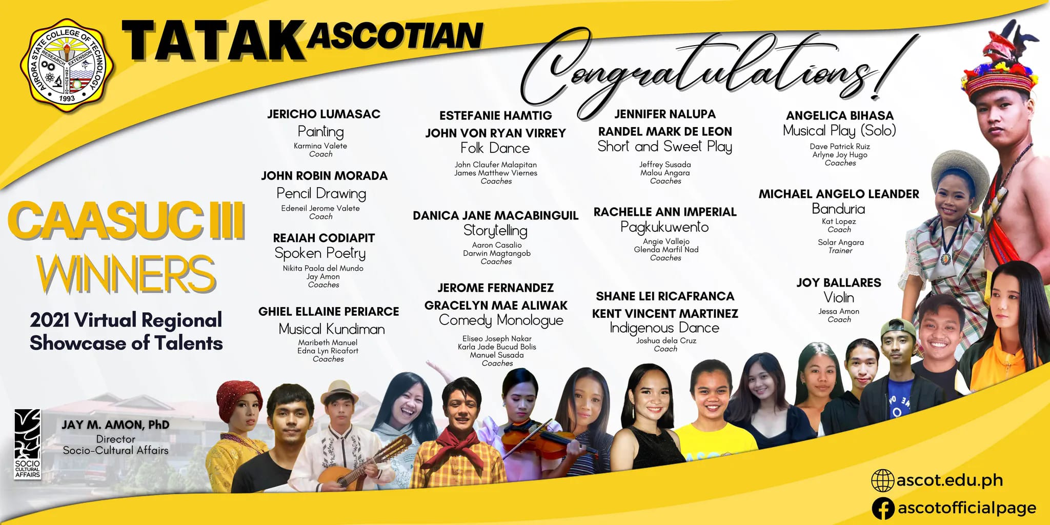 Showing their talents to the world through different art forms while showing our country’s rich culture, seventeen ASCOTian student artists won the top spots in various competitions during the Culture and the Arts Association of State Universities and Colleges (CAASUC) III Virtual Regional Showcase of Talents. With their video entries showing the theme, “Pagsikhay sa continue reading : ASCOT student artists earn top spots in the CAASUC III Regional Showcase of Talents