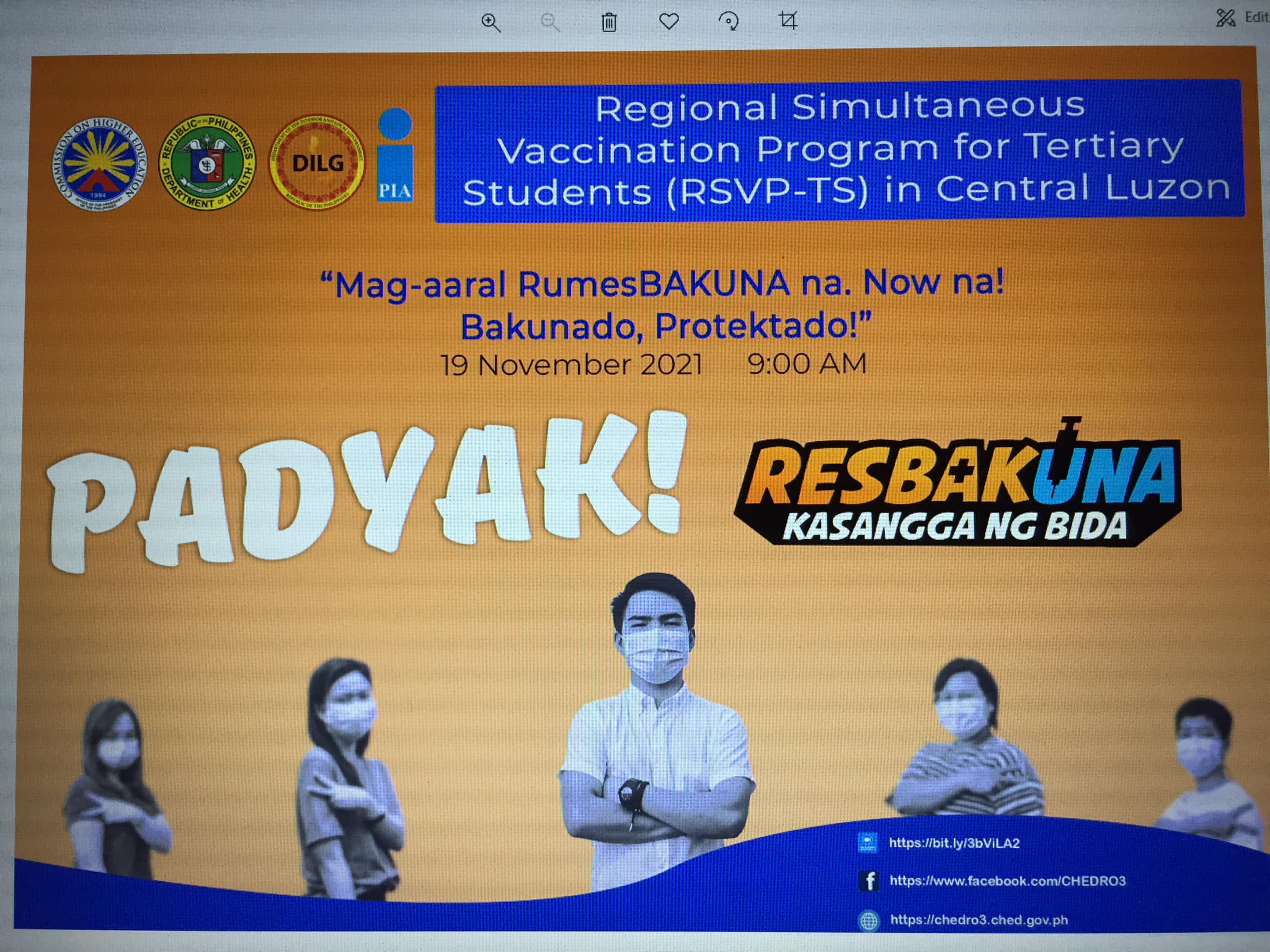 Vaccinating a target of 200 persons, including students, faculty members, staff, and other walk-in individuals; the Aurora State College of Technology (ASCOT) joined the Regional Simultaneous Vaccination Program for Tertiary Students in Central Luzon with the theme, “Mag-aaral RumesBAKUNA na. Now na! Bakunado, Protektado!” at the General Education Building, ASCOT Zabali Campus, November 19. Organized continue reading : ASCOT joins the Regional Simultaneous Vaccination Program for Tertiary Students in Region III