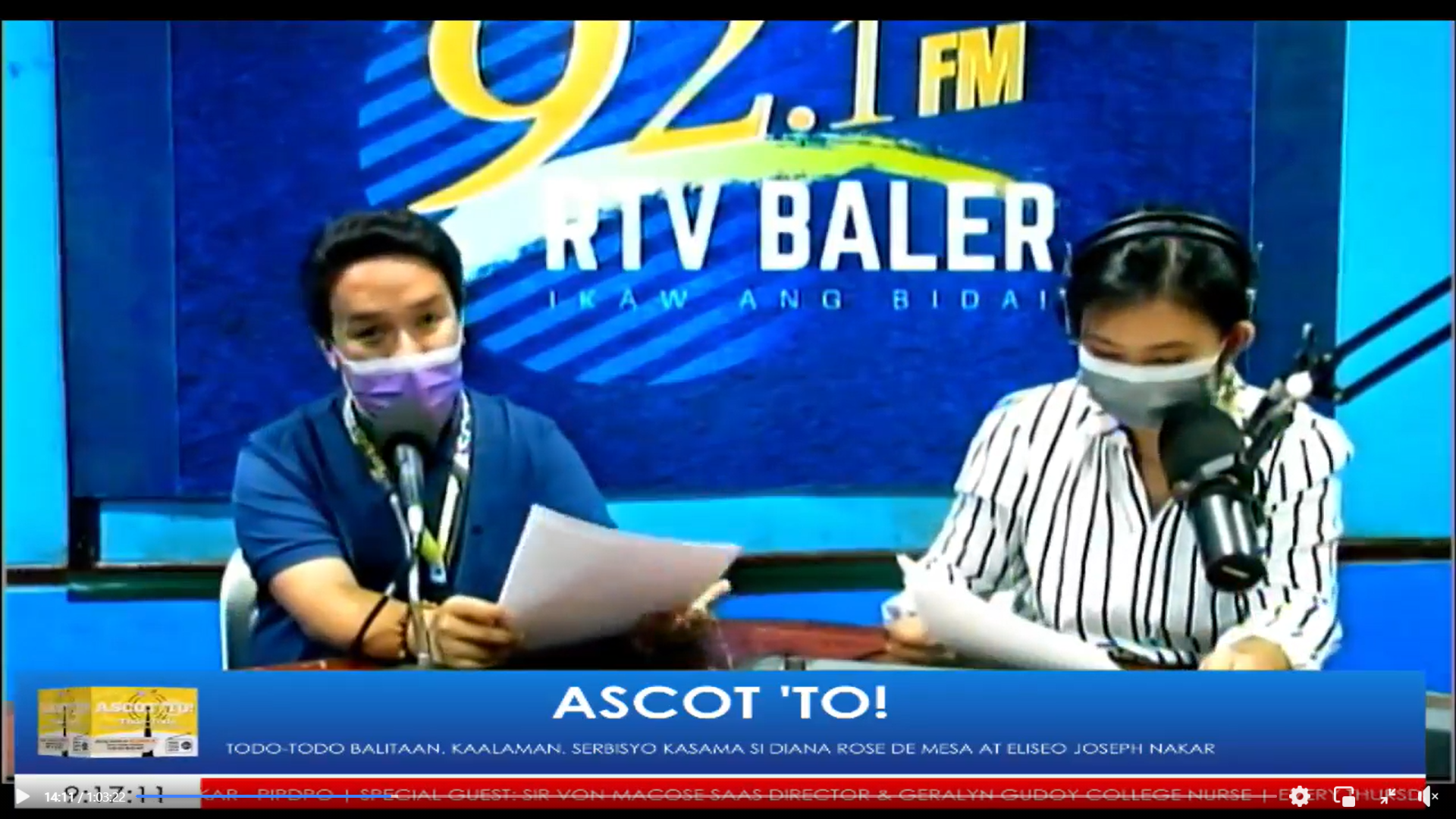 Aiming to give ASCOTians “Todo-todong Balitaan, Todo-todong Kaalaman, at Todo-todong Serbisyo,” (News, Knowledge, and Service), ASCOT’TO, Aurora State College of Technology’s first radio program, started its airing today at 92.1 FM RTV Baler, October 14. Hosted by Ms. Diana Rose P. De Mesa, the College’s Public Information Officer, together with Mr. Eliseo Joseph M. Nakar, continue reading : ASCOT’TO: ASCOT’s first radio program airs its pilot episode