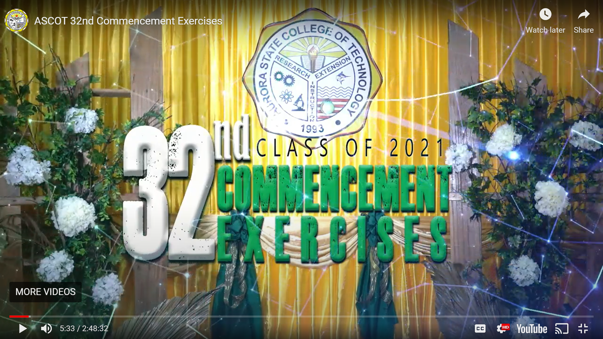 Join us in watching our College’s 32nd Commencement Exercises on October 20, 2021, at 12 Noon. Watch our Virtual Graduation’s Youtube Premiere here on our Official Website, Facebook Page (Aurora State College of Technology – ASCOT), and on YouTube (Aurora State College of Technology). Congratulations on your well-deserved achievement, grads! We are indeed proud of continue reading : ASCOT 32nd Commencement Exercises