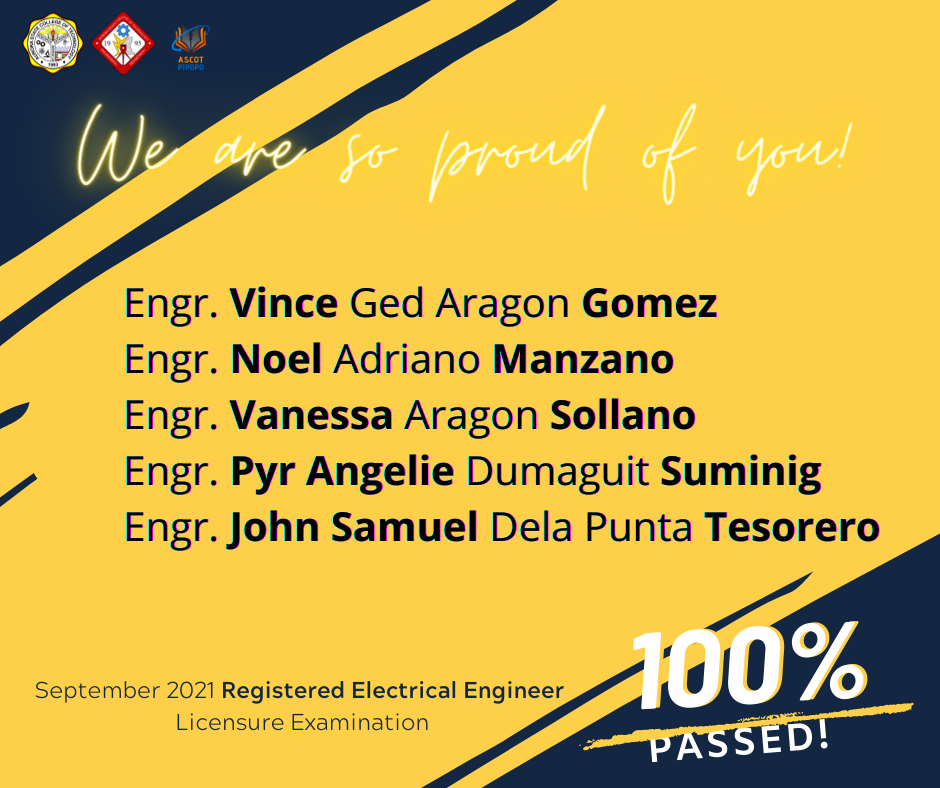100% of ASCOT BSEE Graduates pass the Sept 2021 E.E. Licensure Exam