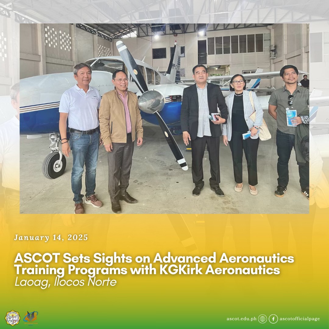 January 14, 2025 – Aurora State College of Technology (ASCOT) is advancing toward global competitiveness and sustainability as President Renato G. Reyes, along with key academic officials, explored potential collaborations with KGKirk Aeronautics Corp. at Laoag International Airport, Ilocos Norte. This partnership aims to introduce immersive training opportunities in engineering and industrial technology, specifically in continue reading : ASCOT Set Sights on Advanced Aeronautics Training Program with KGKirk Aeronautics