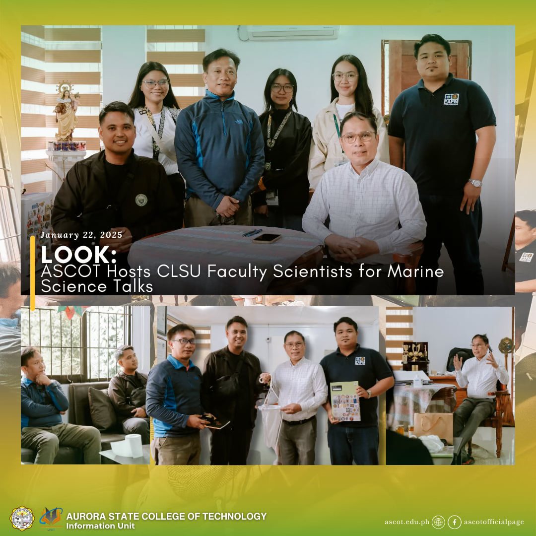 January 22, 2025 – ASCOT, led by President Dr. Renato G. Reyes, welcomed faculty scientists from Central Luzon State University (CLSU), including Dr. Garry A. Benico and Dr. Jerwin R. Undan, to discuss potential marine science collaborations. President Reyes emphasized ASCOT’s commitment to advancing marine science and fisheries programs through joint research. He stressed continue reading : ASCOT Hosts CLSU Faculty Scientists for Marine Science Talks