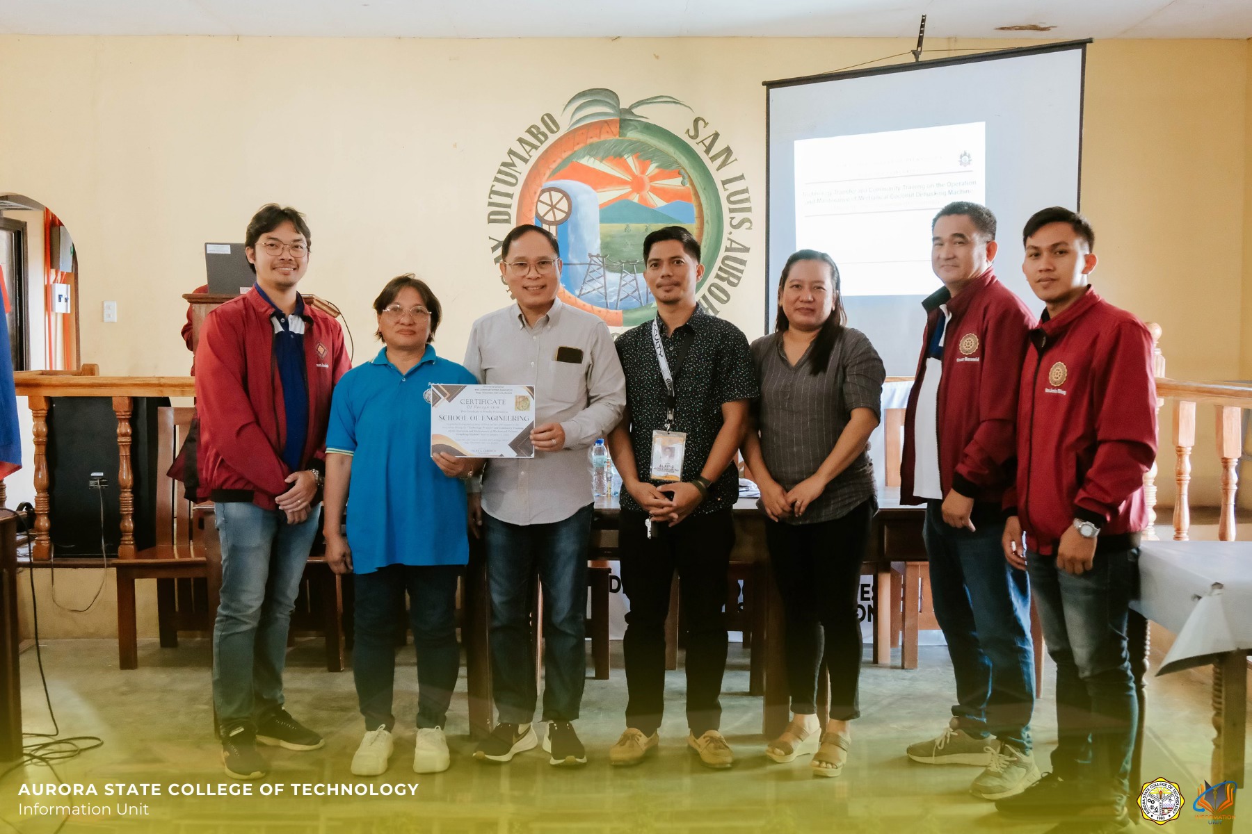 January 17, 2024 – Engineering students from the Aurora State College of Technology (ASCOT) School of Engineering (SoE) introduced a mechanized coconut dehusking machine to boost the livelihood of the Ditumabo Coconut and Livestock Farmers Association (DICOLIFA). The training program, held at the Barangay Hall of Brgy. Ditumabo, showcased a student-designed machine that simplifies continue reading : ASCOT SoE Students Empower Ditumabo Farmers with Coconut Dehusker
